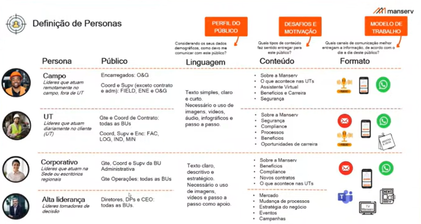 Como mencionado anteriormente, a Manserv conta com 1.500 líderes. Mas qual é a persona que melhor representa esse público?