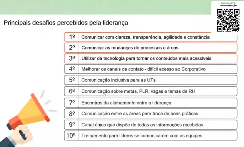 Na época, os 10 maiores desafios de comunicação citados pela liderança na Manserv foram: